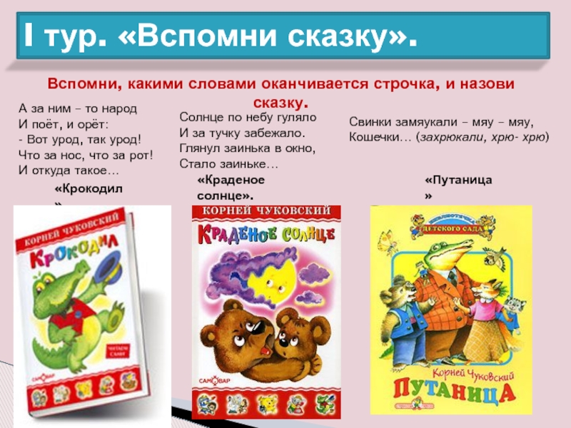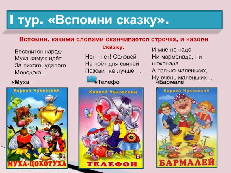 Вспомни, какими словами оканчивается строчка, и назови сказку.