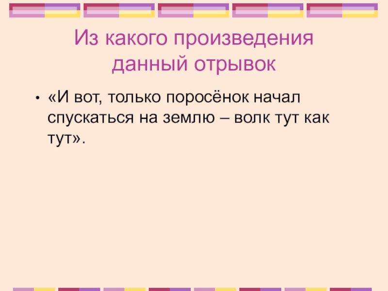 Из какого произведения данный отрывок«И вот, только поросёнок начал спускаться на землю – волк тут как тут».