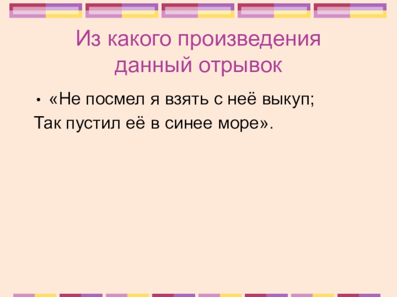 Из какого произведения данный отрывок«Не посмел я взять с неё выкуп;Так пустил её в синее море».