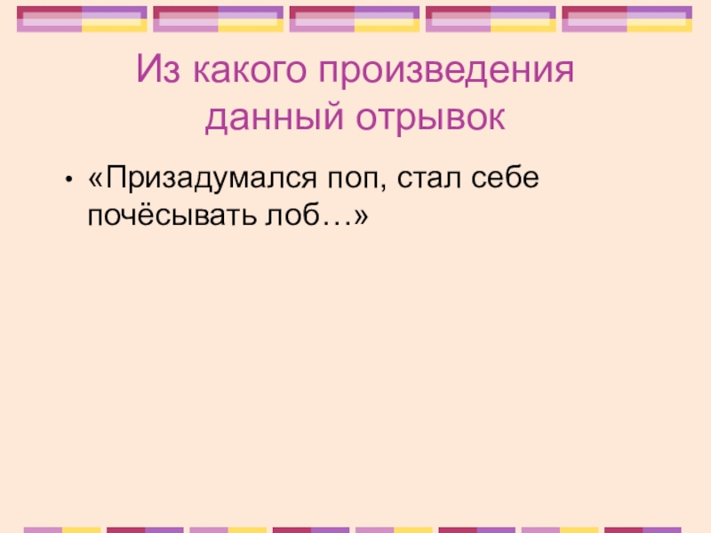 Из какого произведения данный отрывок«Призадумался поп, стал себе почёсывать лоб…»