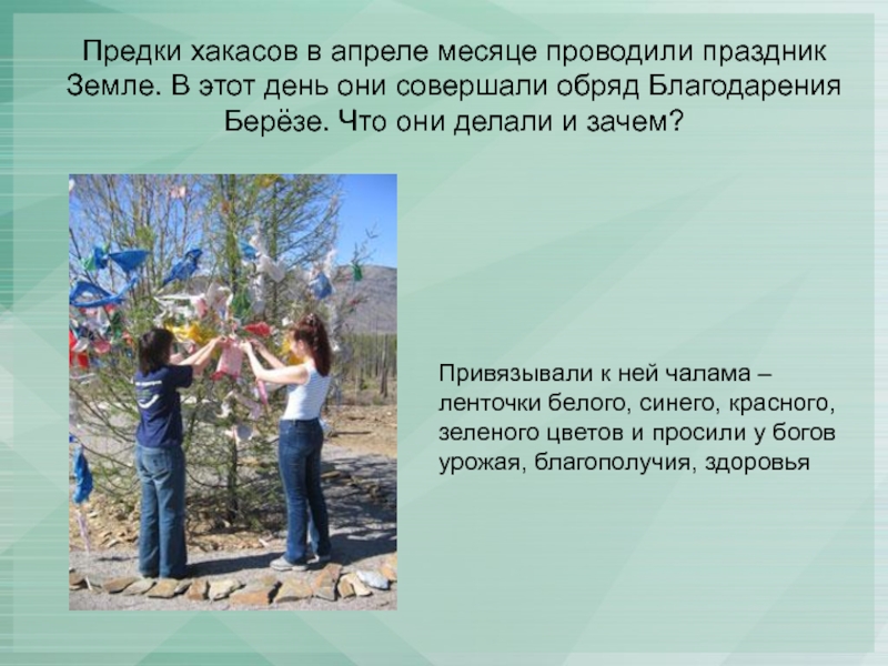 Привязывали к ней чалама – ленточки белого, синего, красного, зеленого цветов и просили у богов урожая, благополучия, здоровья