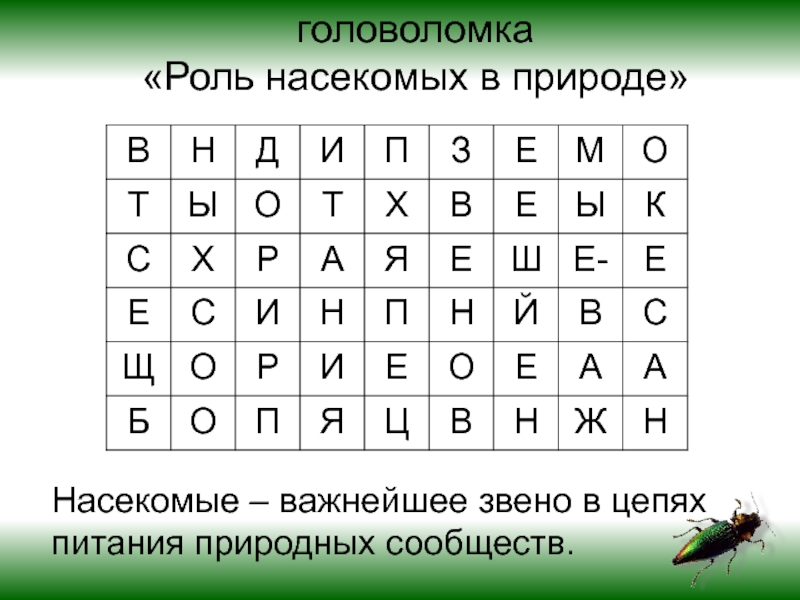 Насекомые – важнейшее звено в цепях питания природных сообществ.