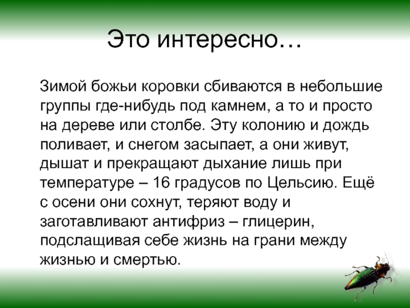 Зимой божьи коровки сбиваются в небольшие группы где-нибудь