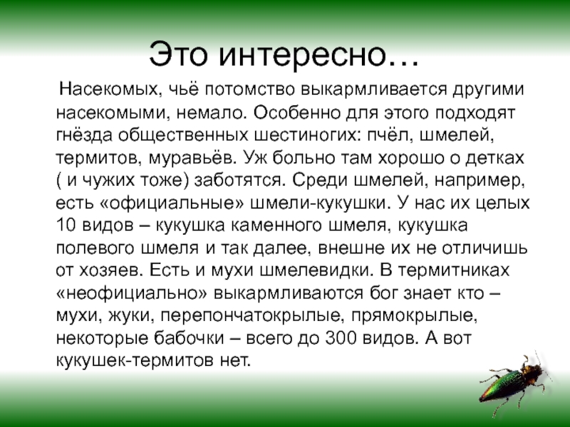 Слайд 172. Много ли «кукушек» среди насекомых?