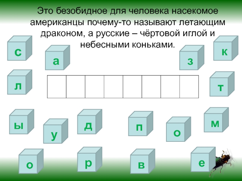 Слайд 47Это безобидное для человека насекомое американцы почему-то называют летающим драконом, а