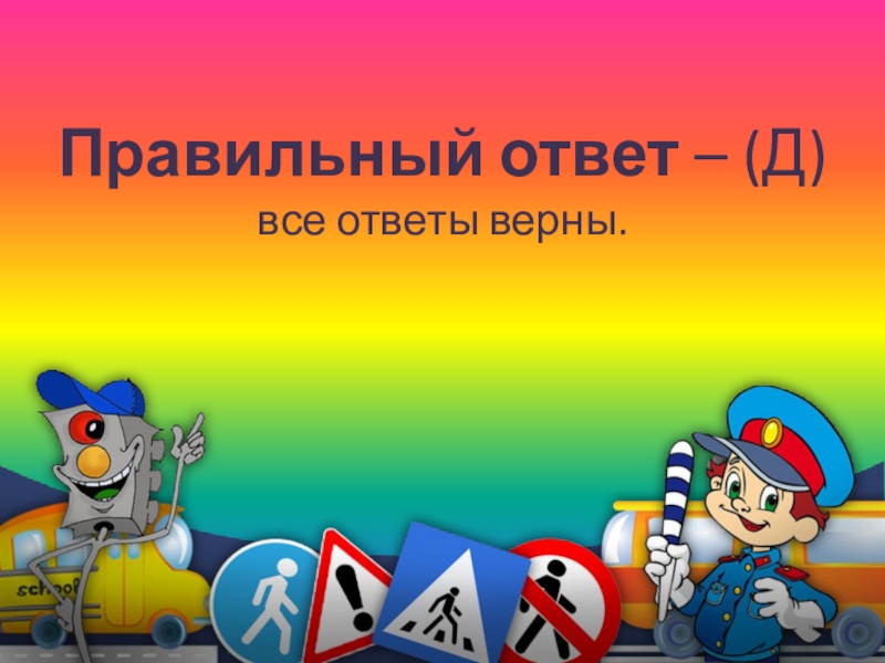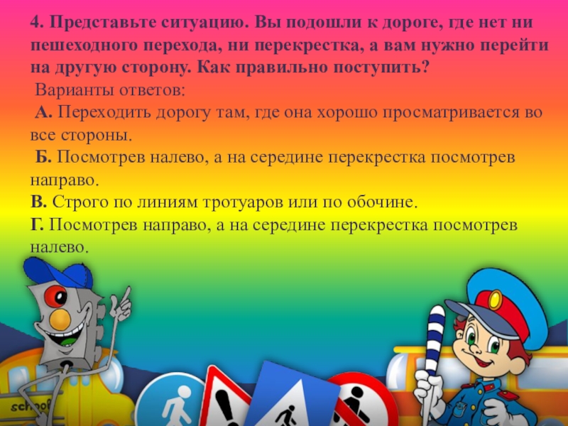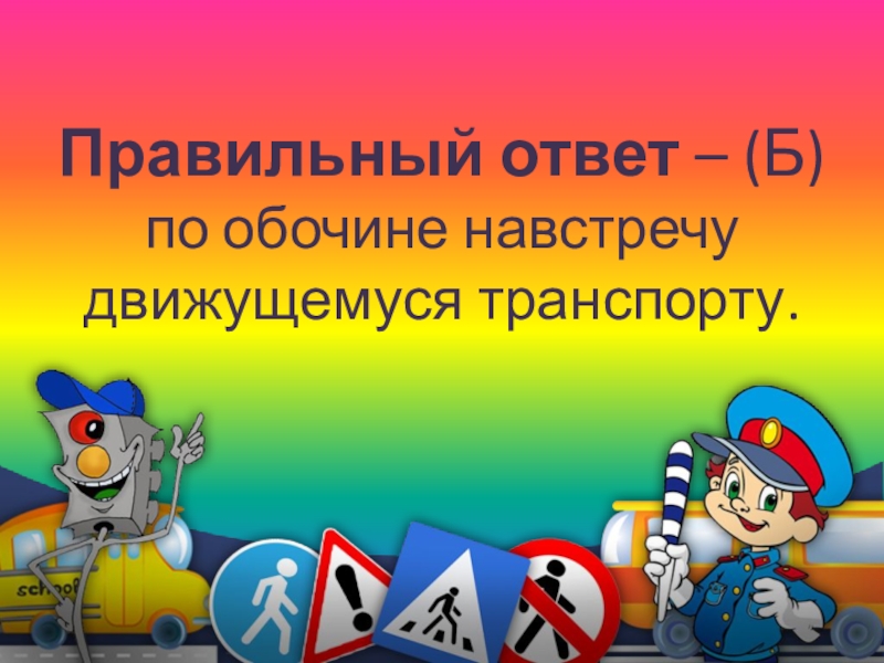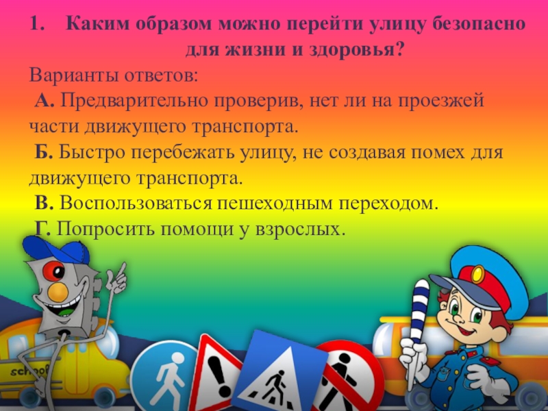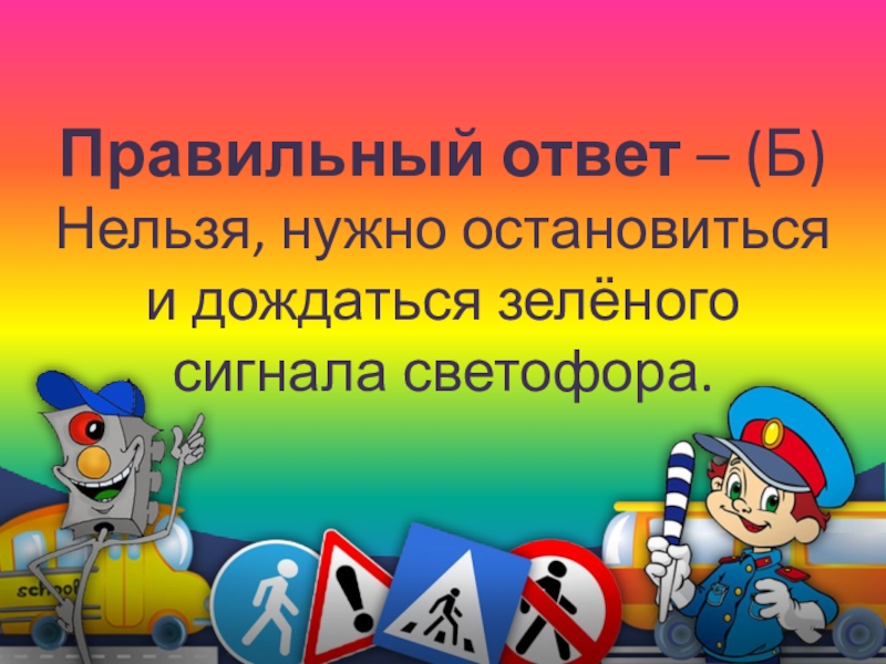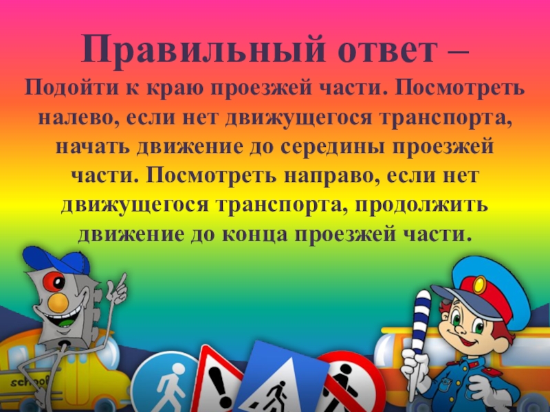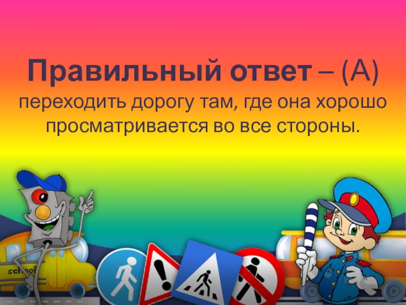 Слайд 13Правильный ответ – (А) переходить дорогу там, где она хорошо просматривается