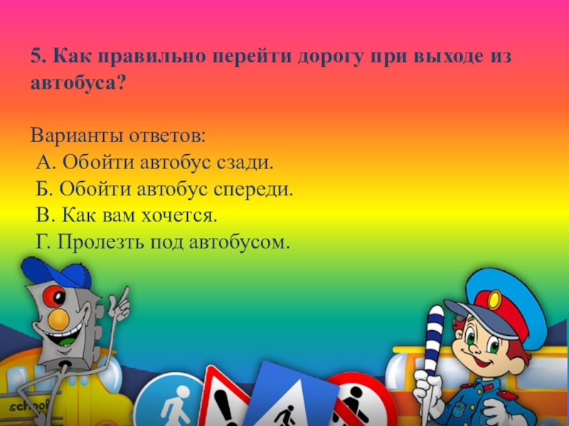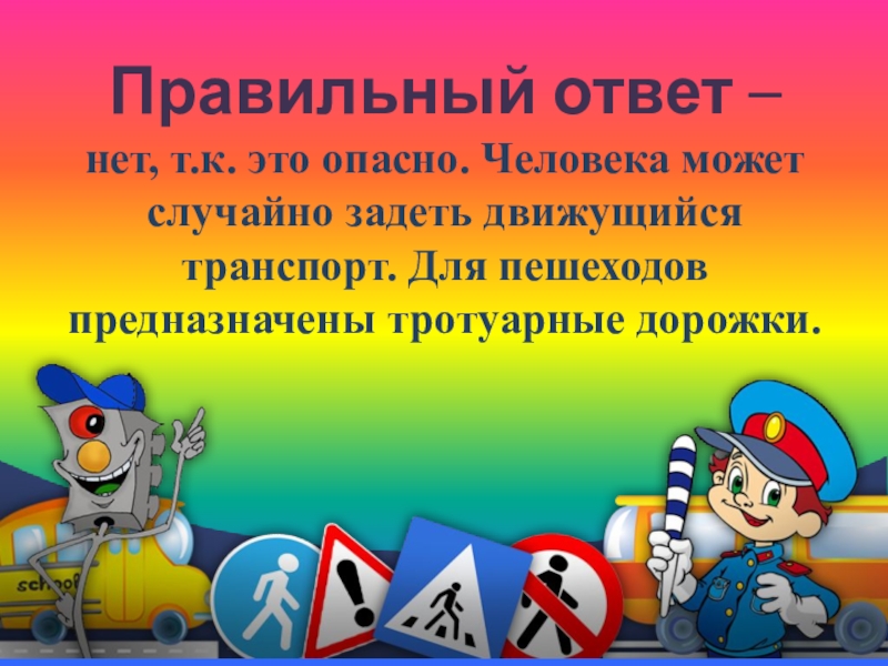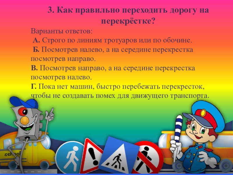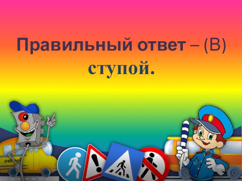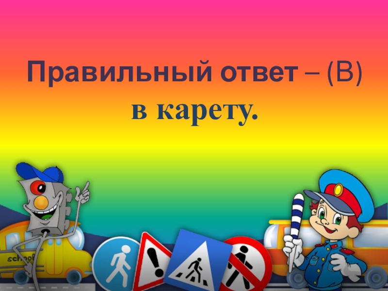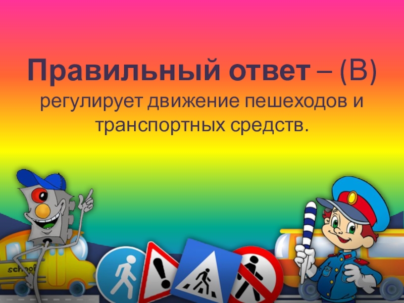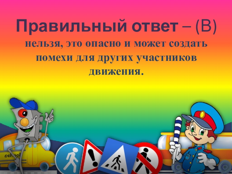 Слайд 13Правильный ответ – (А) переходить дорогу там, где она хорошо просматривается