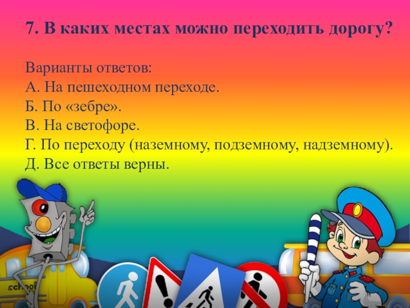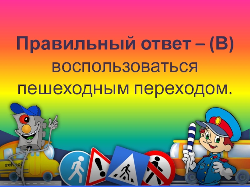 Слайд 7Правильный ответ – (В) воспользоваться пешеходным переходом.