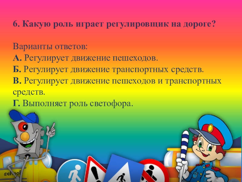 Слайд 166. Какую роль играет регулировщик на дороге?