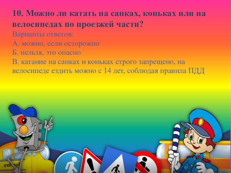 Слайд 4510. Можно ли катать на санках, коньках или на велосипедах по