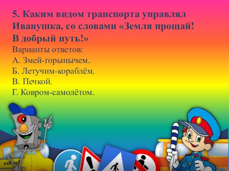 Слайд 565. Каким видом транспорта управлял Иванушка, со словами «Земля прощай!