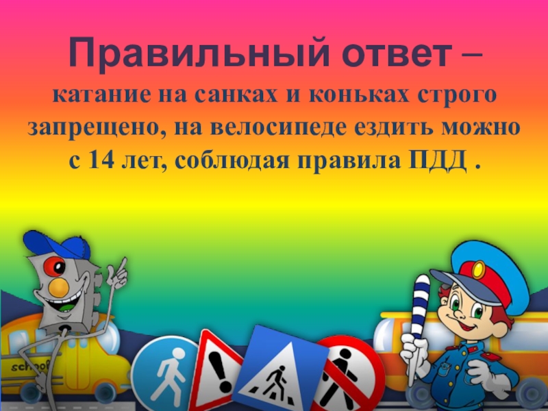 В. катание на санках и коньках строго запрещено, на велосипеде ездить можно с 14 лет, соблюдая правила ПДД