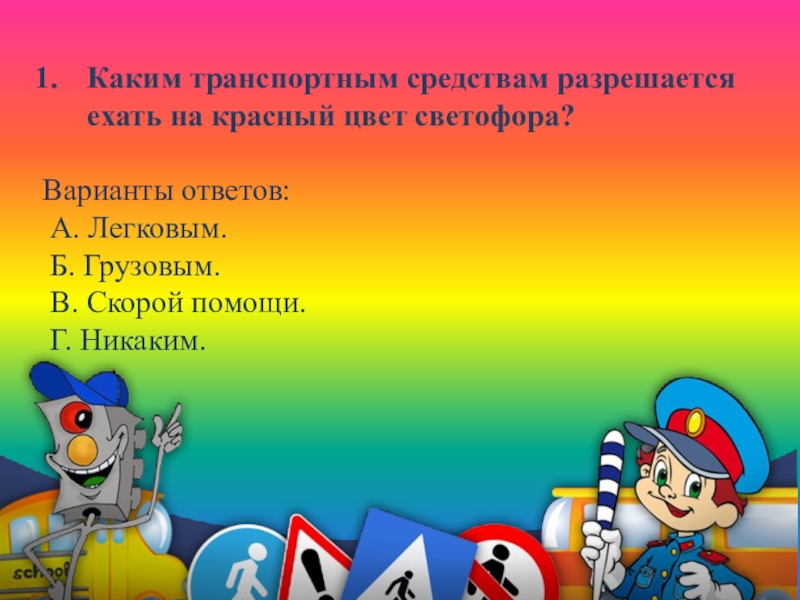Слайд 27Каким транспортным средствам разрешается ехать на красный цвет светофора?