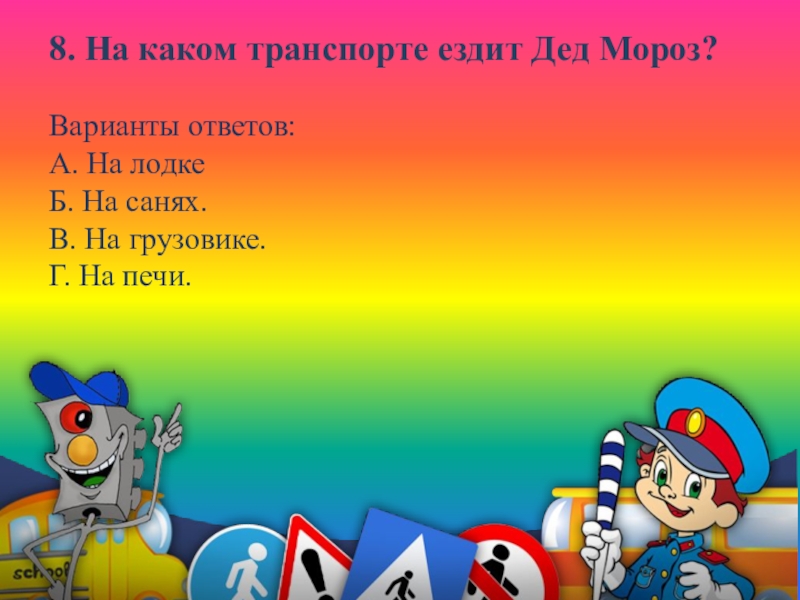 Слайд 628. На каком транспорте ездит Дед Мороз?