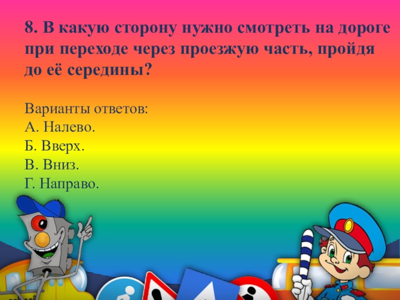 Слайд 208. В какую сторону нужно смотреть на дороге при переходе через