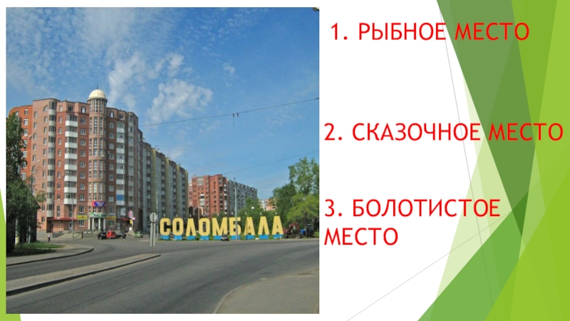 1. РЫБНОЕ МЕСТО2. Сказочное место 3. болотистое место