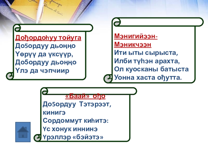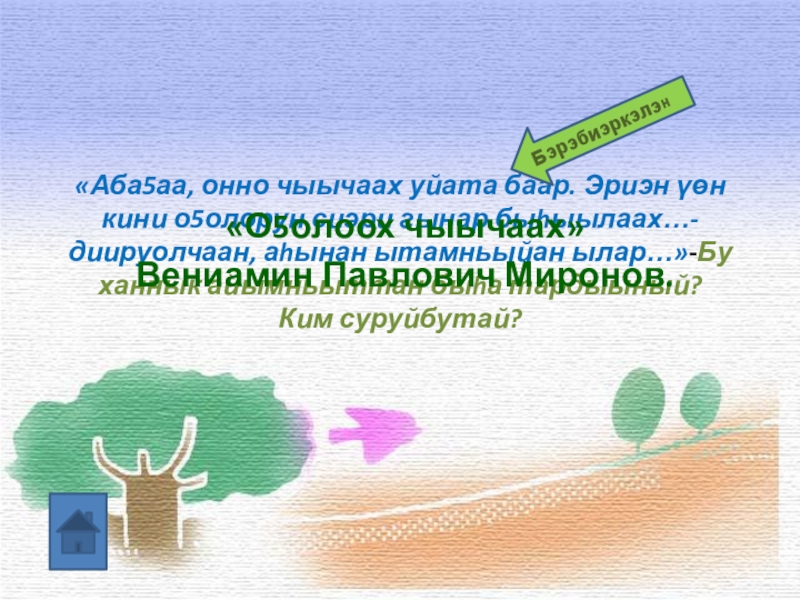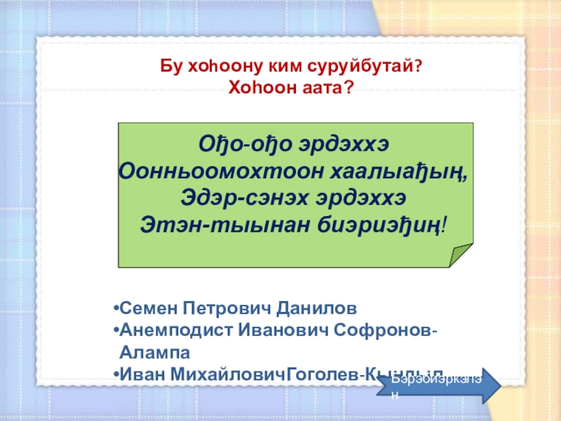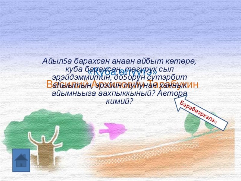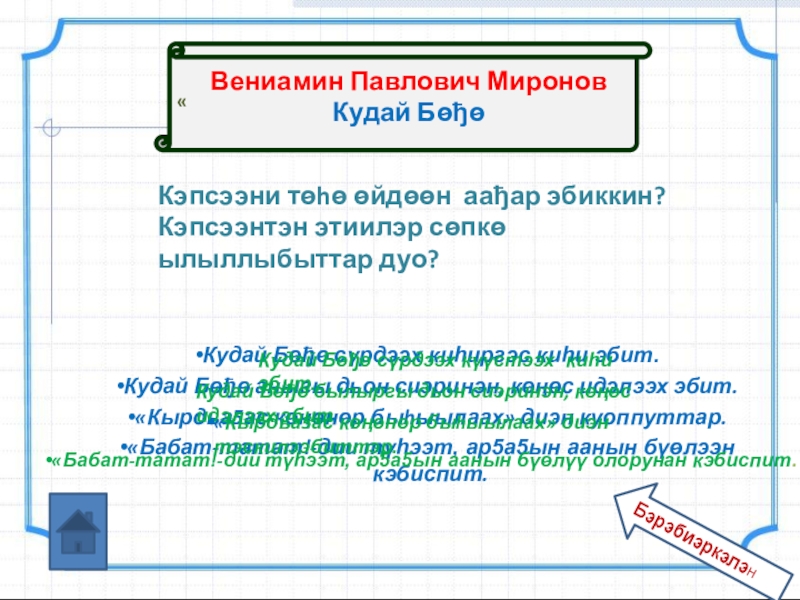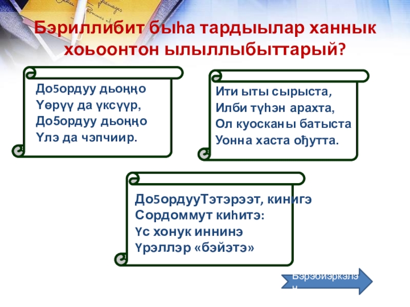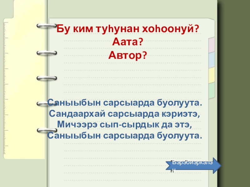 «Бабат-татат!-дии түһээт, ар5а5ын аанын бүѳлүү олорунан кэбиспит.