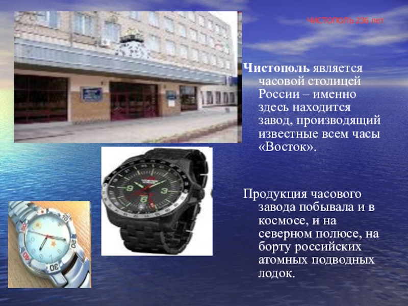 Продукция часового завода побывала и в космосе, и на северном полюсе, на борту российских атомных подводных лодок.