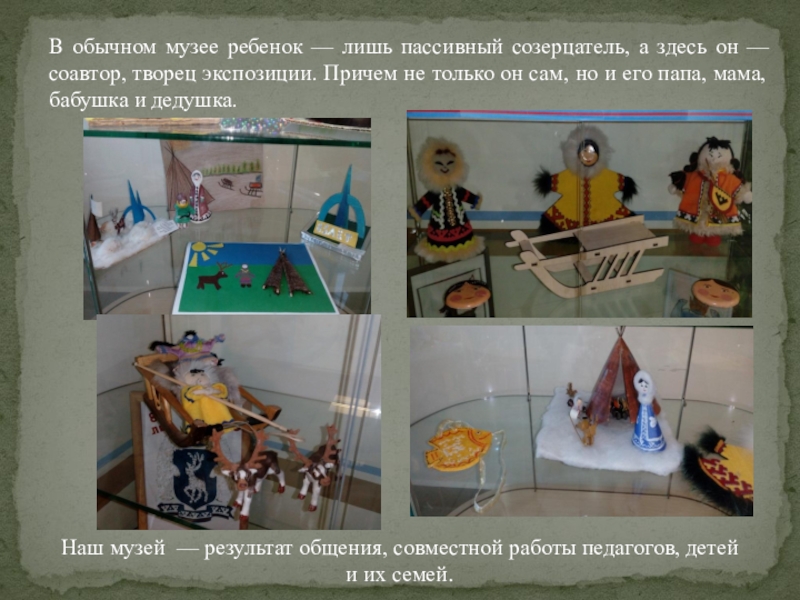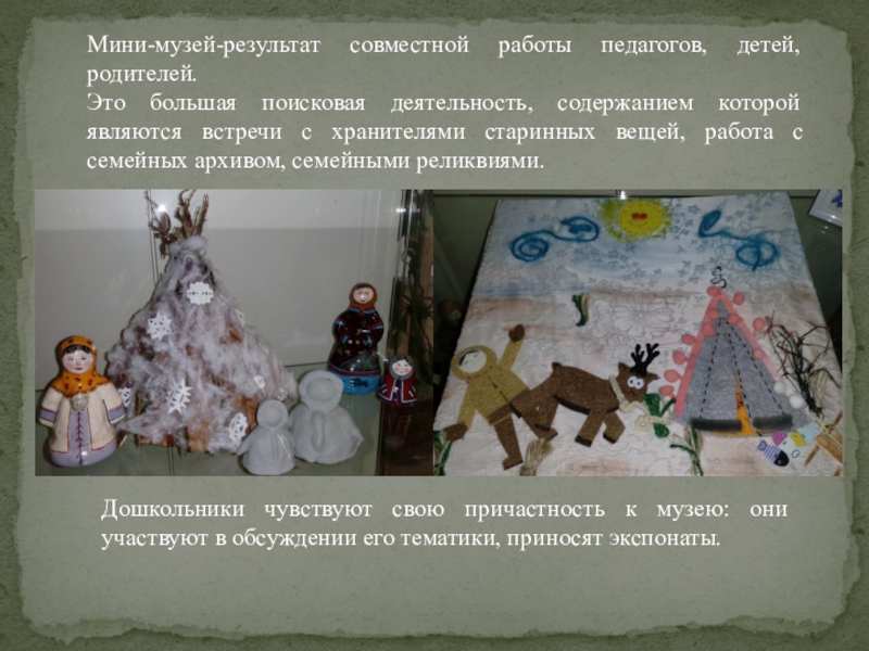 Дошкольники чувствуют свою причастность к музею: они участвуют в обсуждении его тематики, приносят экспонаты.