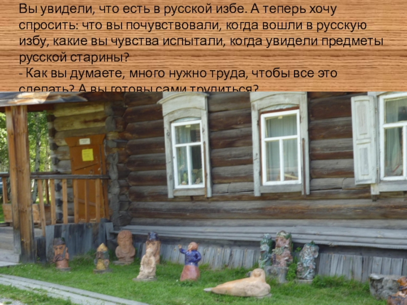 что вы почувствовали, когда вошли в русскую избу, какие вы чувства испытали, когда увидели предметы русской старины?