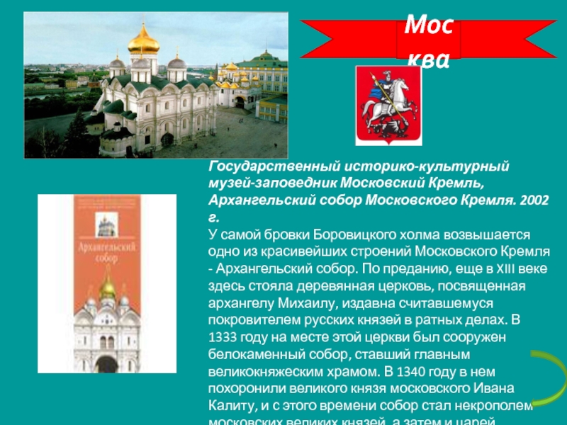 МоскваГосударственный историко-культурный музей-заповедник Московский Кремль, Архангельский собор Московского Кремля. 2002 г.У самой бровки Боровицкого холма возвышается одно