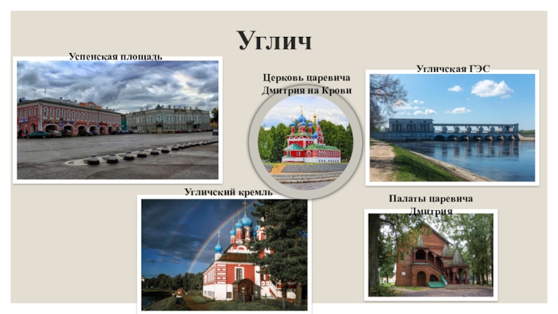 УгличУспенская площадьУгличская ГЭСПалаты царевича ДмитрияУгличский кремльЦерковь царевича Дмитрия на Крови