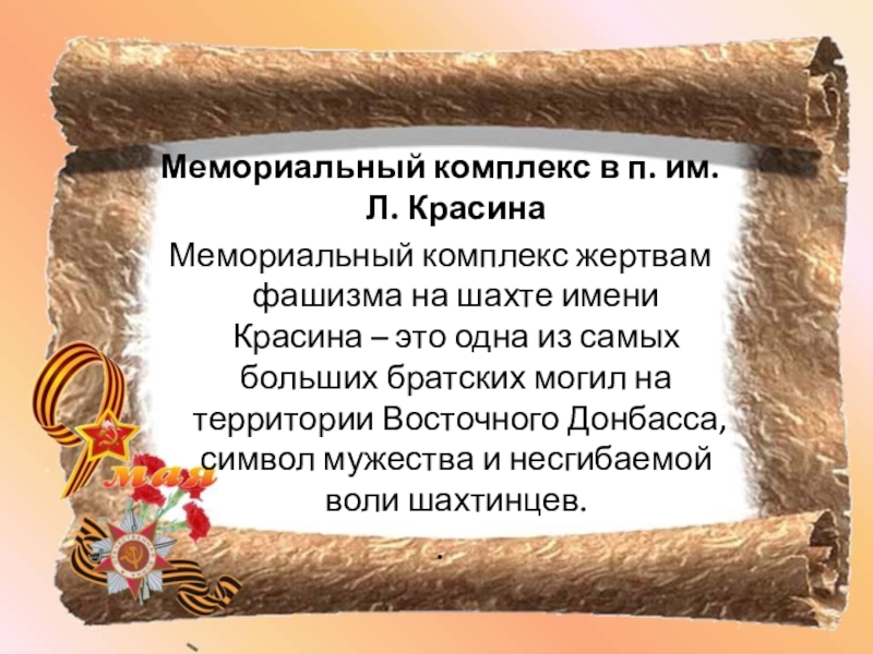 Слайд 23Мемориальный комплекс в п. им. Л. Красина