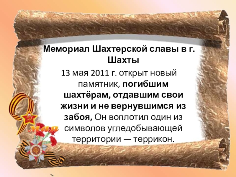 Слайд 29Мемориал Шахтерской славы в г.Шахты