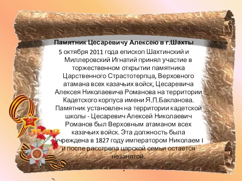 Слайд 36Памятник Цесаревичу Алексею в г.Шахты