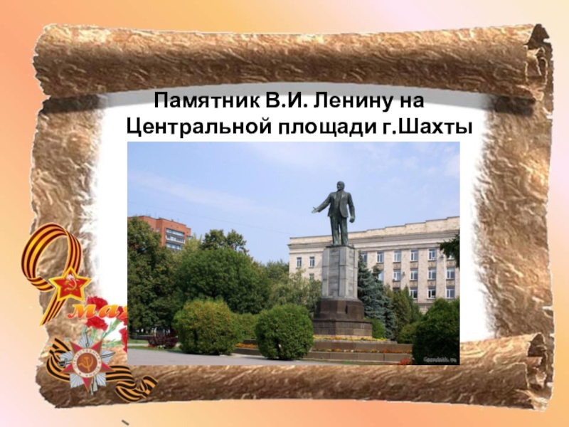 Слайд 9Памятник В.И. Ленину на Центральной площади г.Шахты