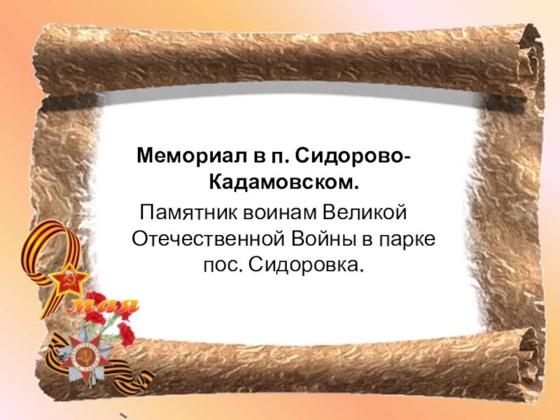 Слайд 17Мемориал в п. Сидорово-Кадамовском.