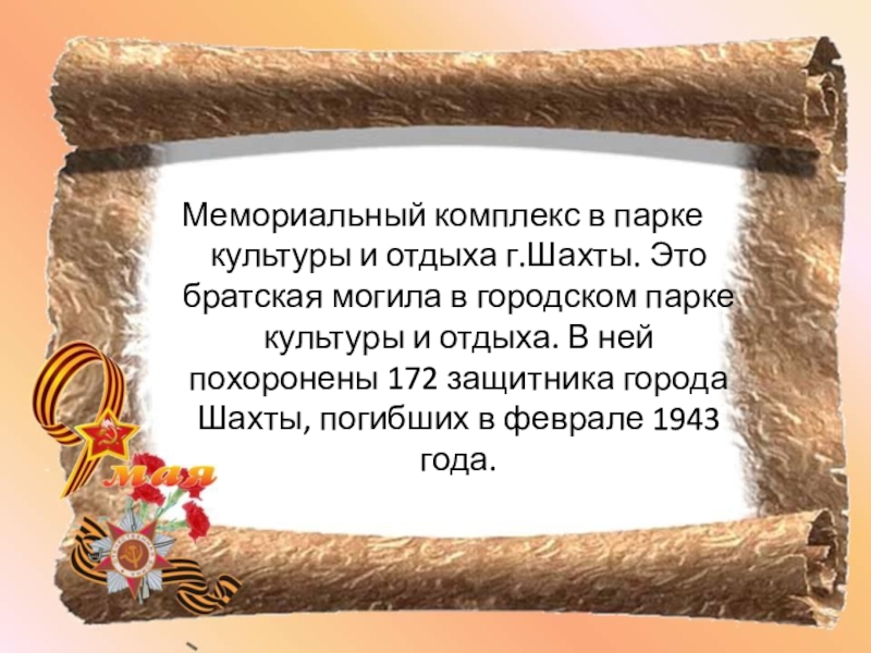 Слайд 7Мемориальный комплекс в парке культуры и отдыха г.Шахты. Это братская могила