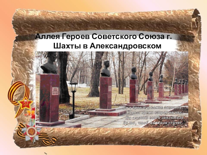 Слайд 12Аллея Героев Советского Союза г.Шахты в Александровском парке