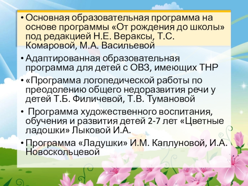 Основная образовательная программа на основе программы «От рождения до школы» под