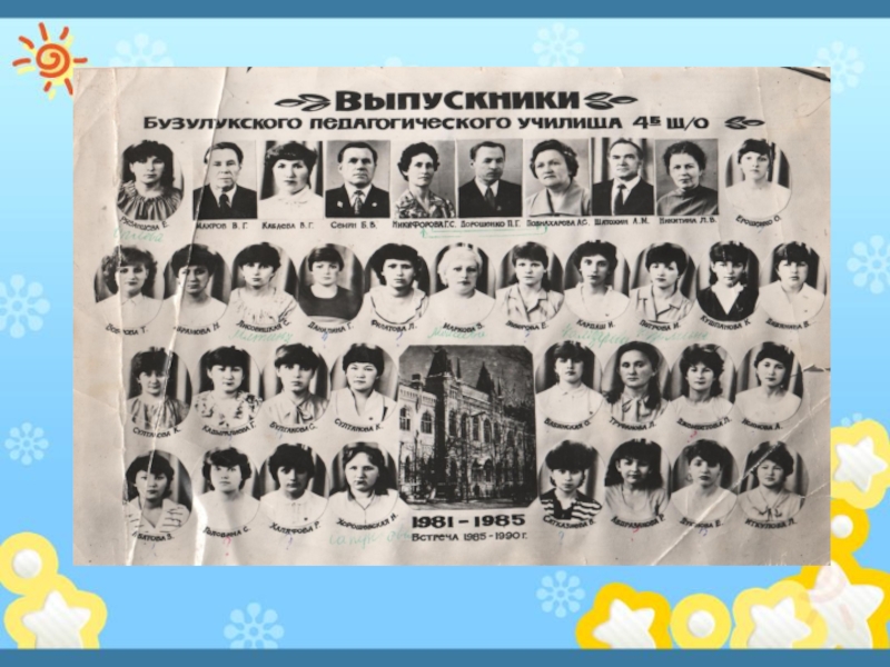 я поступила в педагогическое училище и получила диплом УЧИТЕЛЯ НАЧАЛЬНЫХ КЛАССОВ. Через год пришла работать в родную школу, где меня встретил опытный и добрый коллектив моих любимых учителей, который всегда и во всем был готов помочь мне !