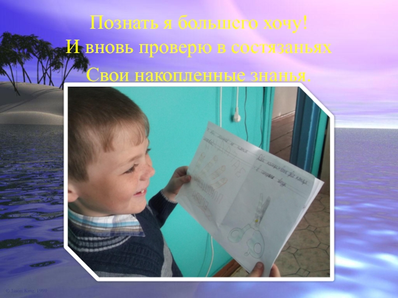 Слайд 13Познать я большего хочу! И вновь проверю в состязаньях Свои накопленные знанья.
