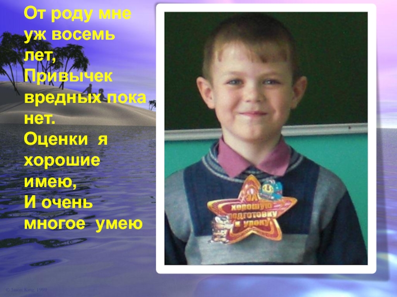От роду мне уж восемь лет,  Привычек вредных пока нет.  Оценки я хорошие имею,