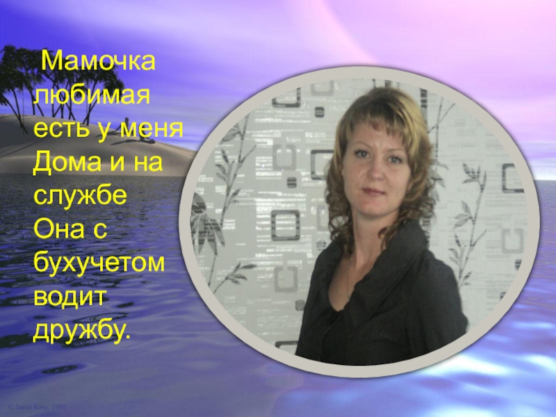 Мамочка любимая есть у меняДома и на службеОна с бухучетом водит дружбу.