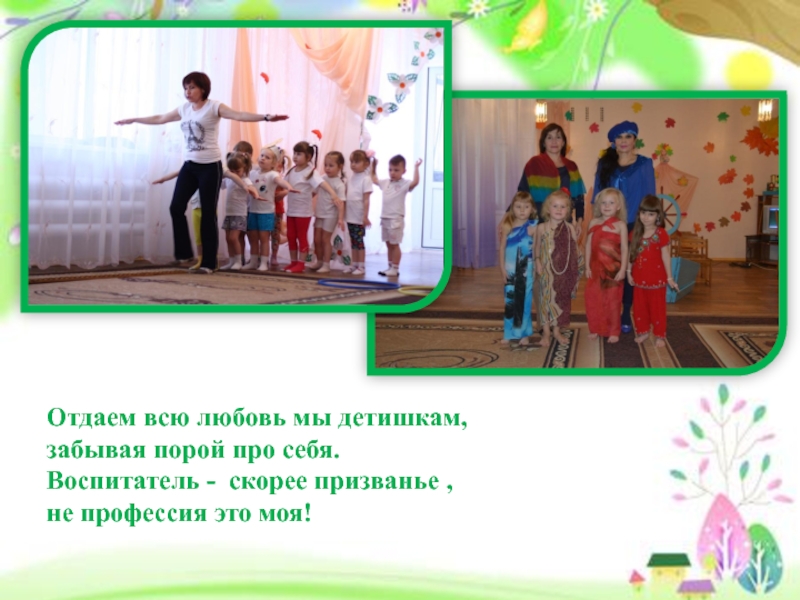 Слайд 7Отдаем всю любовь мы детишкам, забывая порой про себя. Воспитатель - скорее