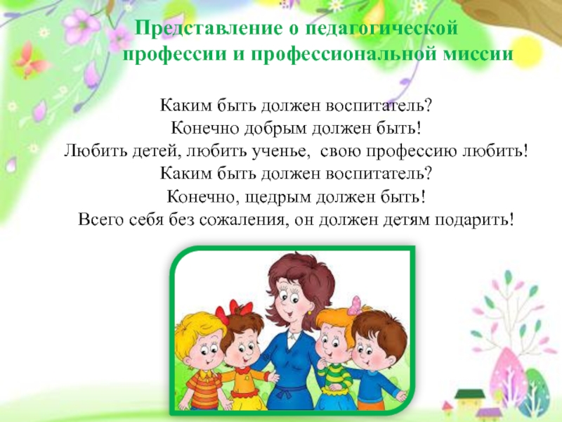 Представление о педагогической      профессии и профессиональной миссии  Каким быть должен воспитатель?