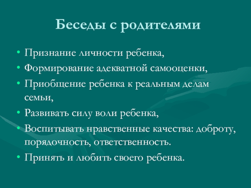 Слайд 13Беседы с родителями