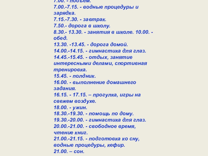 Сегодня нормальный день младшего школьника – в среднем 5 уроков в день, плюс 2-3 часа дома на самоподготовку, 3-4 часа телевизор и компьютер, плюс чтение книг.