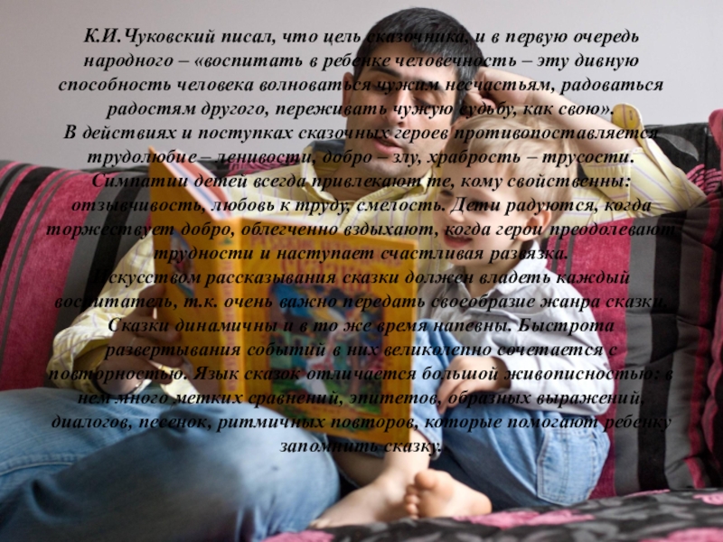Слайд 3К.И.Чуковский писал, что цель сказочника, и в первую очередь народного –