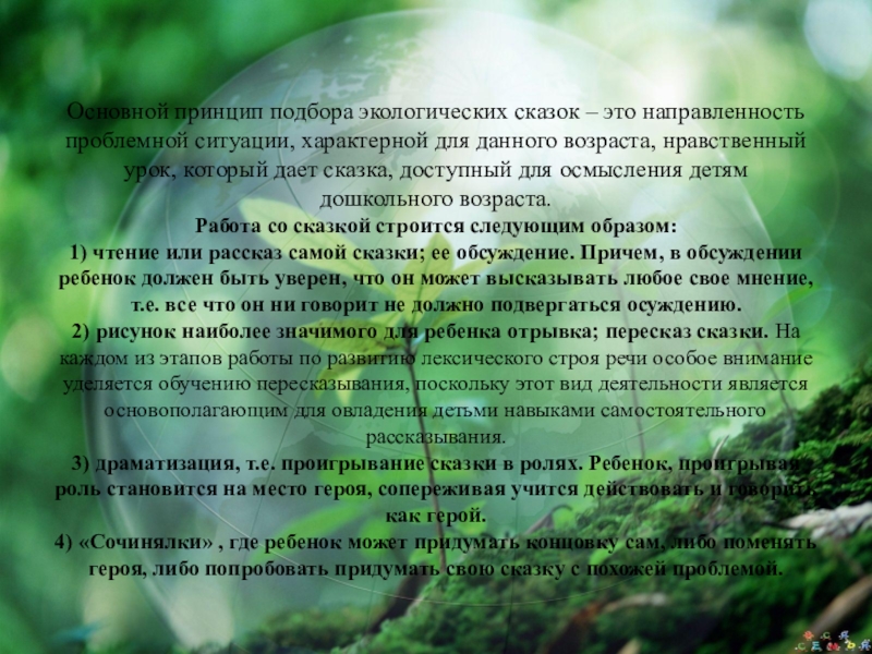 Основной принцип подбора экологических сказок – это направленность проблемной ситуации, характерной