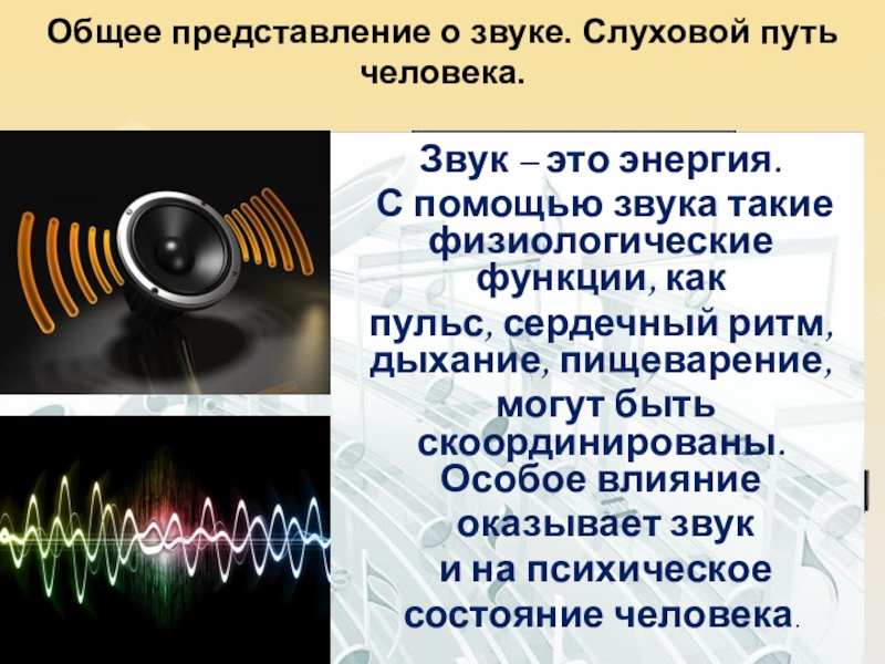 Общее представление о звуке. Слуховой путь человека.