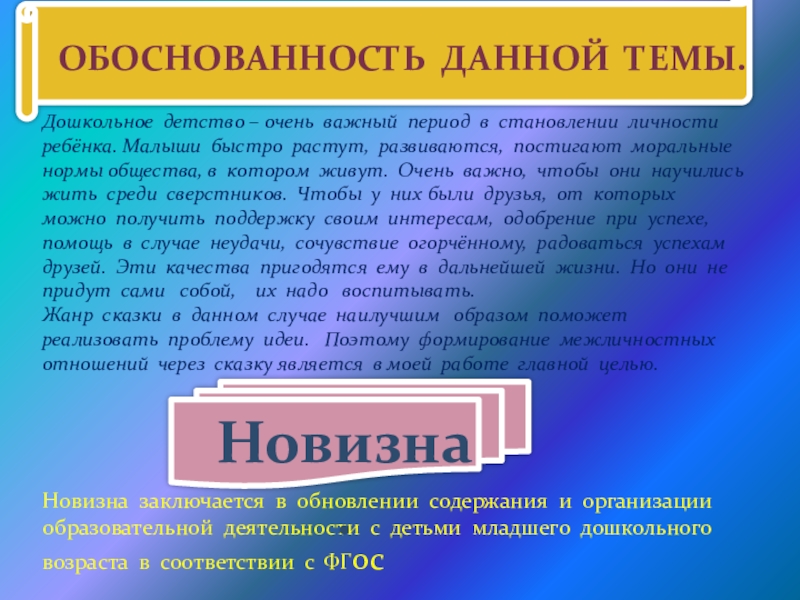Тема «Влияние сказки на формирование межличностных отношений младших дошкольников».