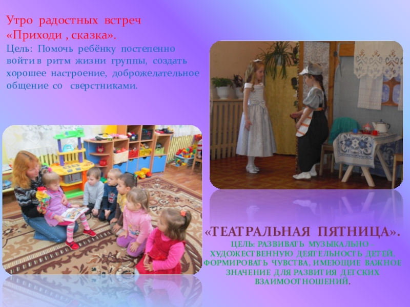 Цель: Воспитывать любовь к русскому народному творчеству; формировать дружелюбие , трудолюбие, желание оказывать помощь.