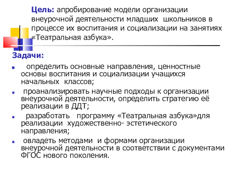проанализировать научные подходы к организации внеурочной деятельности, определить стратегию её реализации в ДДТ;