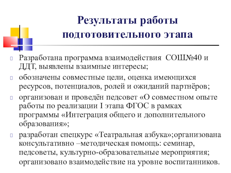 Организована консультативно-методическая помощь: семинар, педсоветы, культурно- образовательные мероприятия.