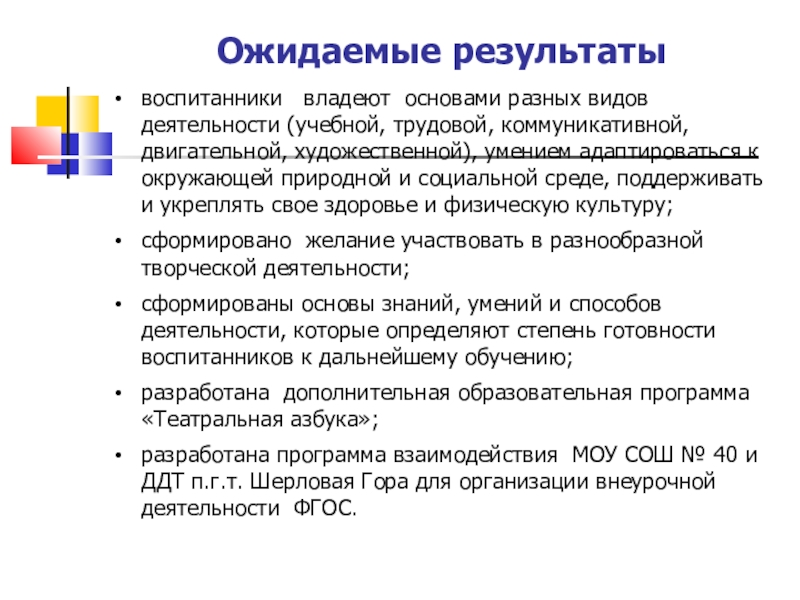 разработать программу «Театральная азбука»для реализации художественно- эстетического направления;